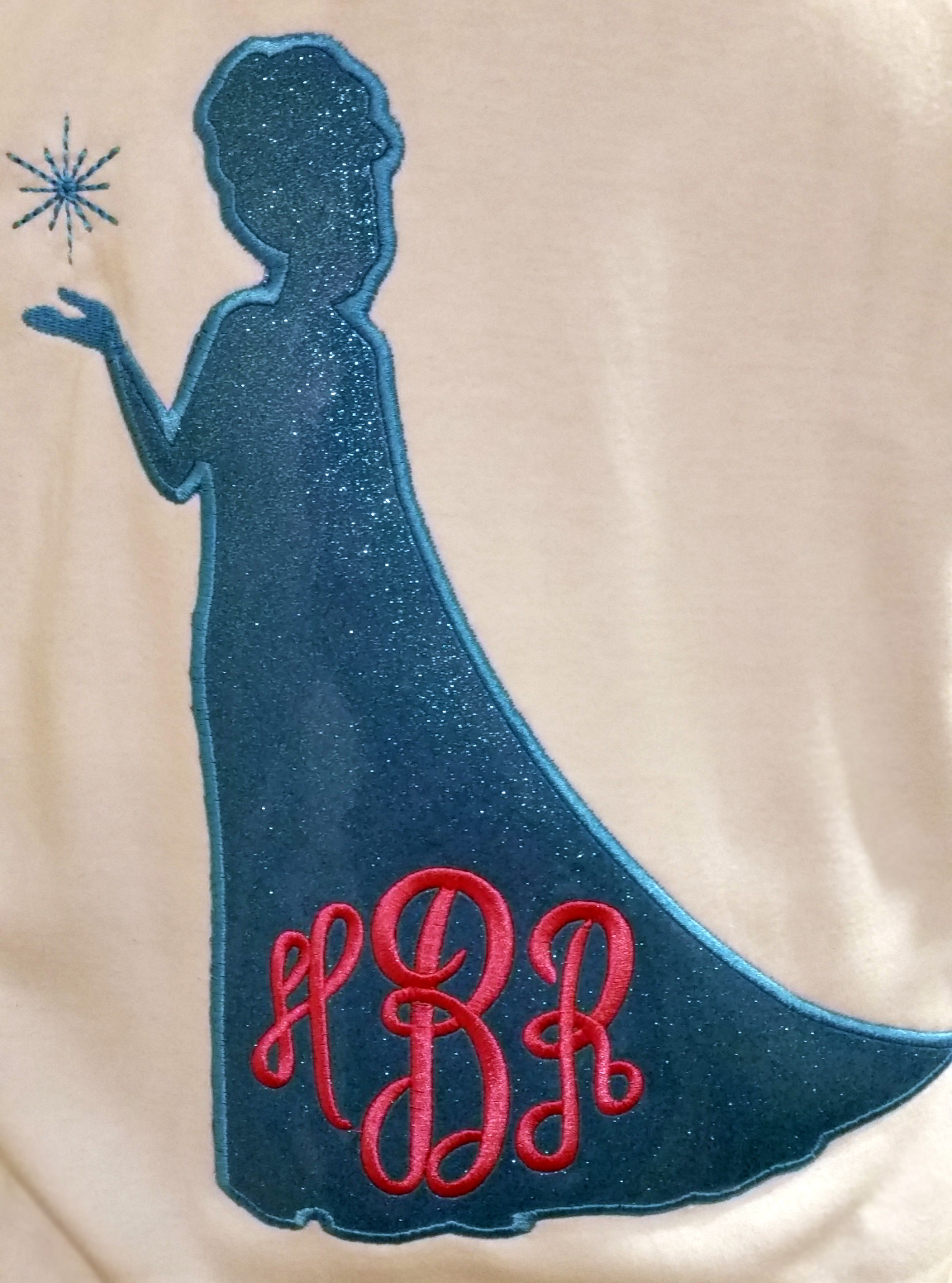 Applique design sized to fit 4 by 4,  5 by 7, and 6 by 10 hoop size.