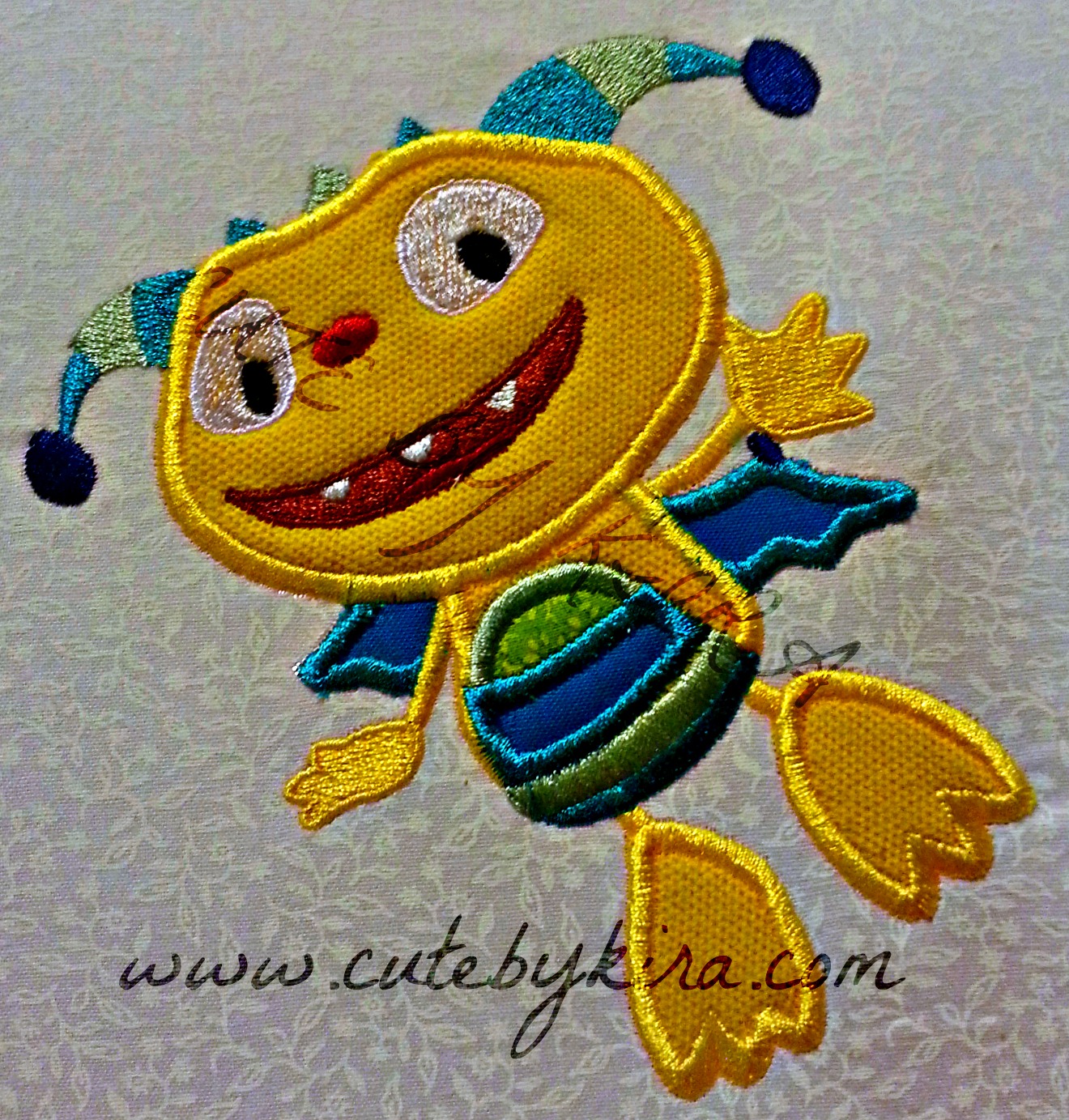 Applique design sized to fit 4 by 4, 5 by 7 and 6 by 10 hoop size.