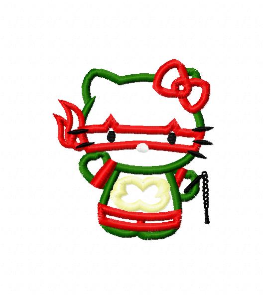 Ninja Kitty Applique Embroidery Design