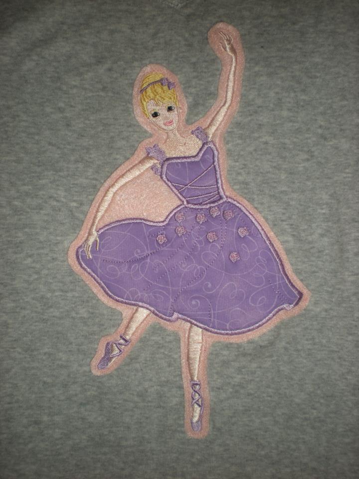 Applique design sized to fit 5 by 7 and 6 by 10 hoop size.